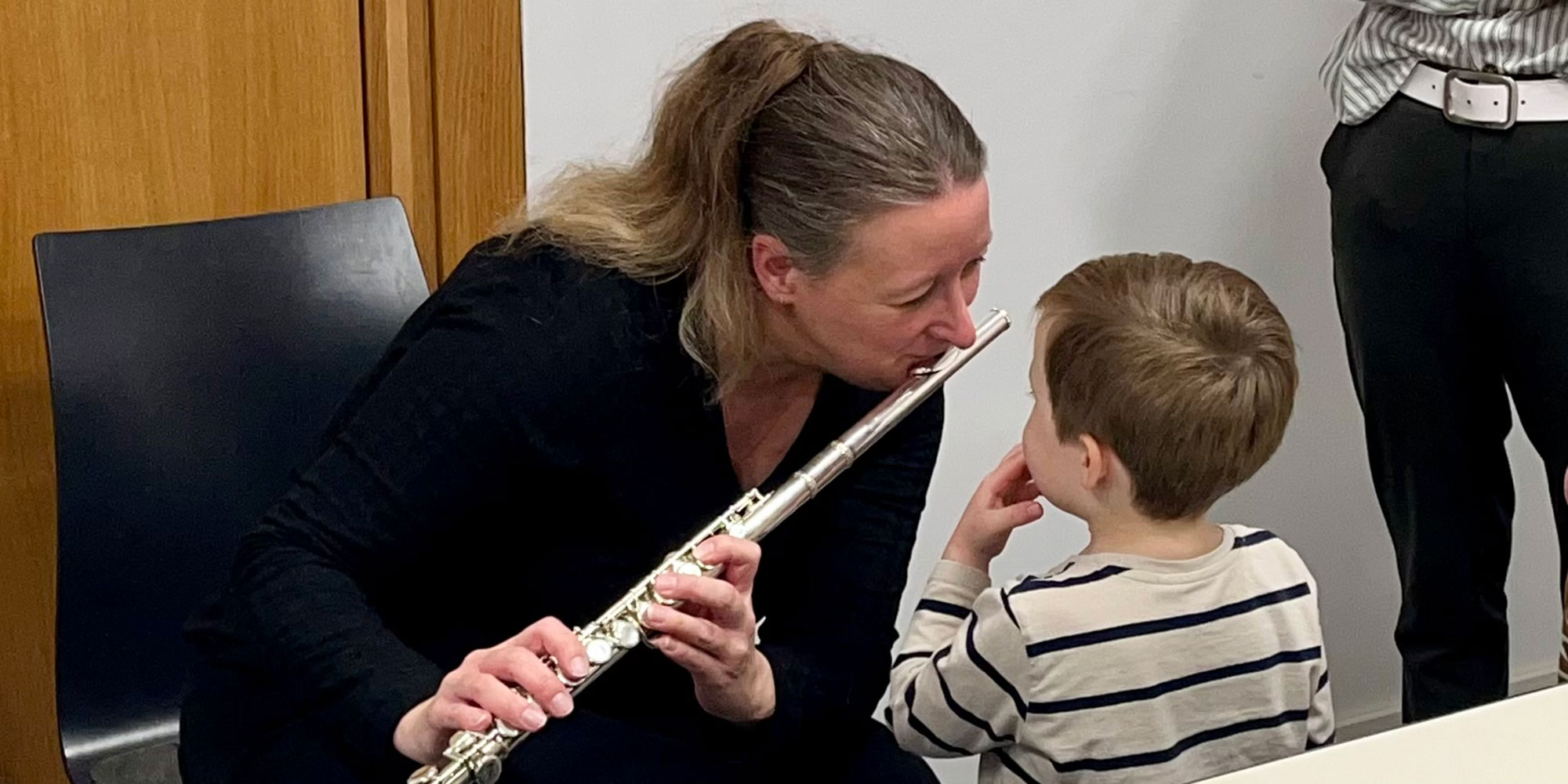 Ein besonderes Highlight für alle war der praktische Teil: Die Kinder durften die Instrumente selbst ausprobieren. Begeistert probierten sie die Trompete, Flöte, Klarinette, Posaune, Tuba, das Horn, Tenorhorn, Saxofon und Schlagzeug aus und entdeckten dabei vielleicht sogar ihren eigenen „Ton“ – ganz wie Ferdinand im Buch.